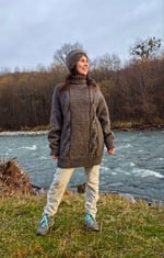 - elongated hem, high turtleneck, raglan sleeve, ribbed cuffs