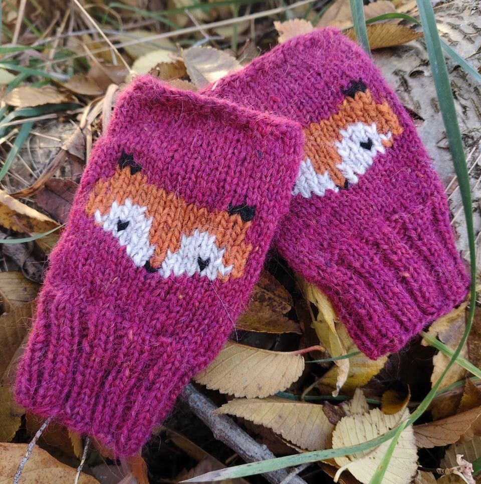 Woodland fingerless mittens with sweet foxes will keep hands warm and comfortable in any season. Made of authentic Icelandic wool.