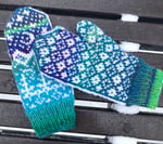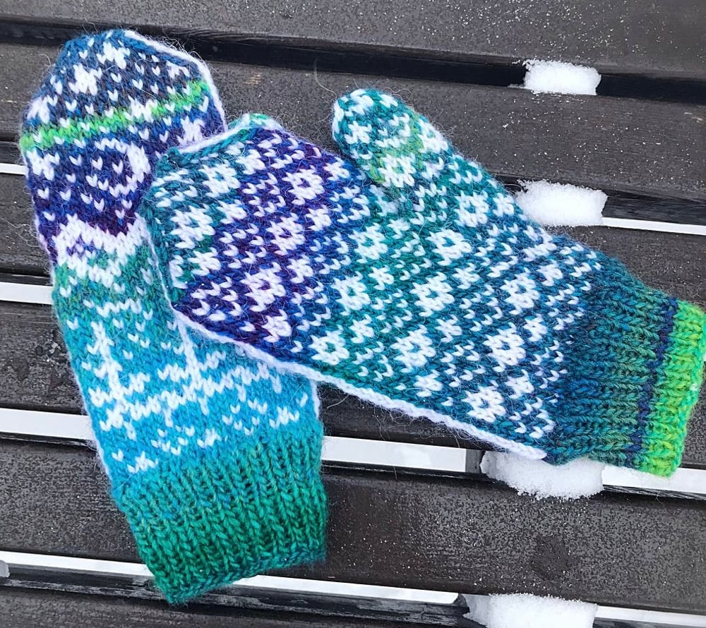 “Starry night” mittens in magic colours made of soft merino wool blend. They’ll keep your hands warm and comfortable during cool seasons.