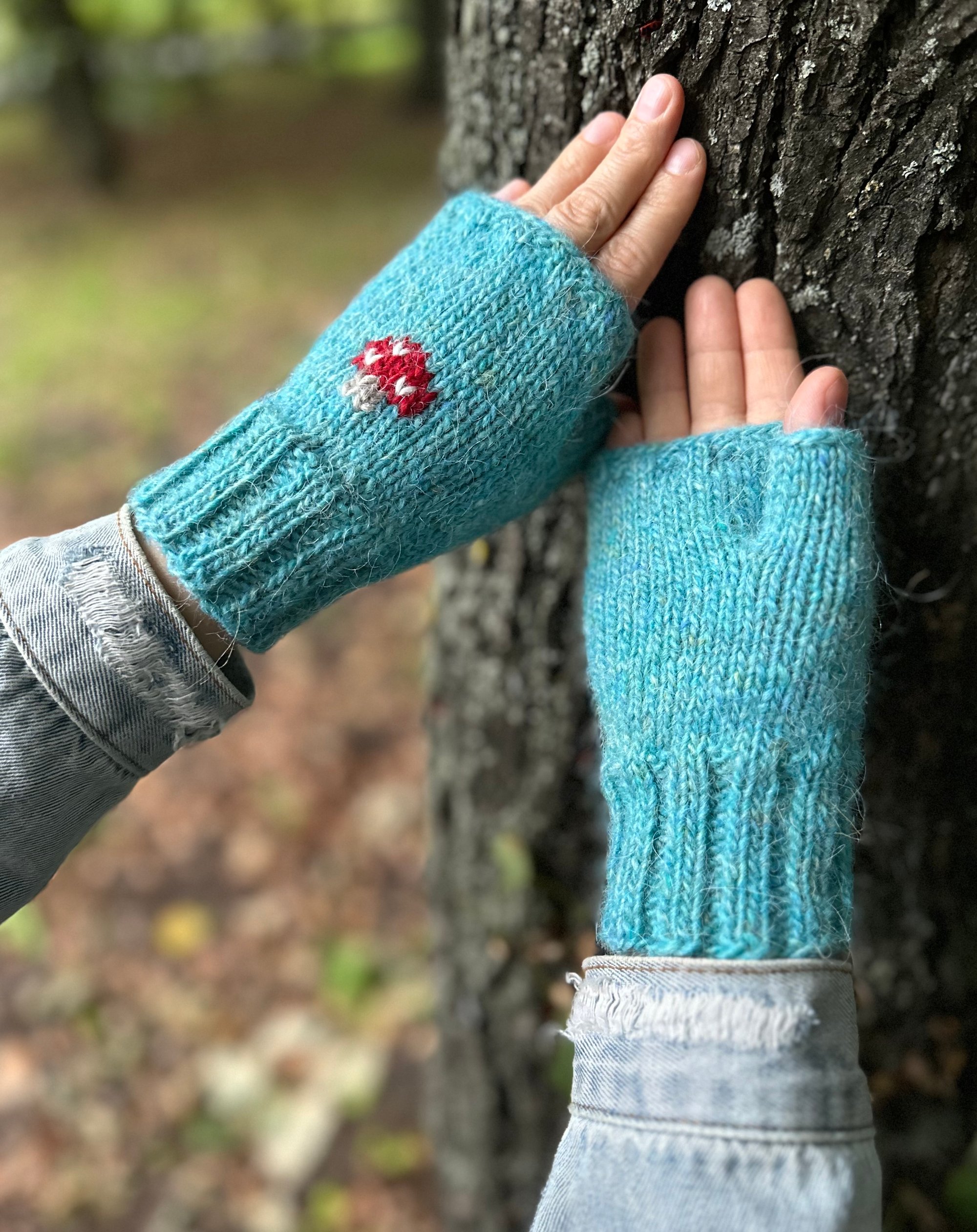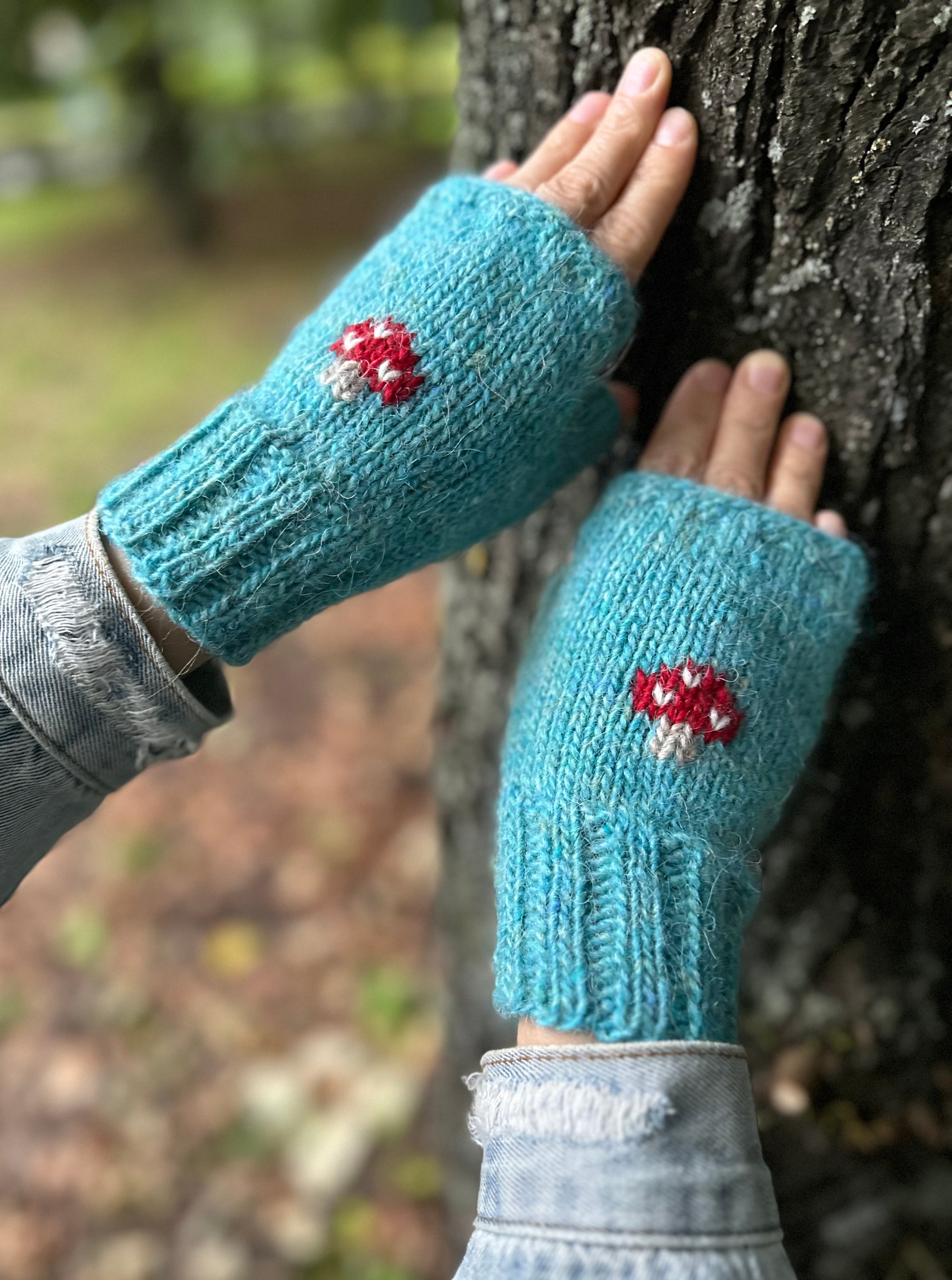 “Toadstool” fingerless mittens - Glacier blue - Ready to ship