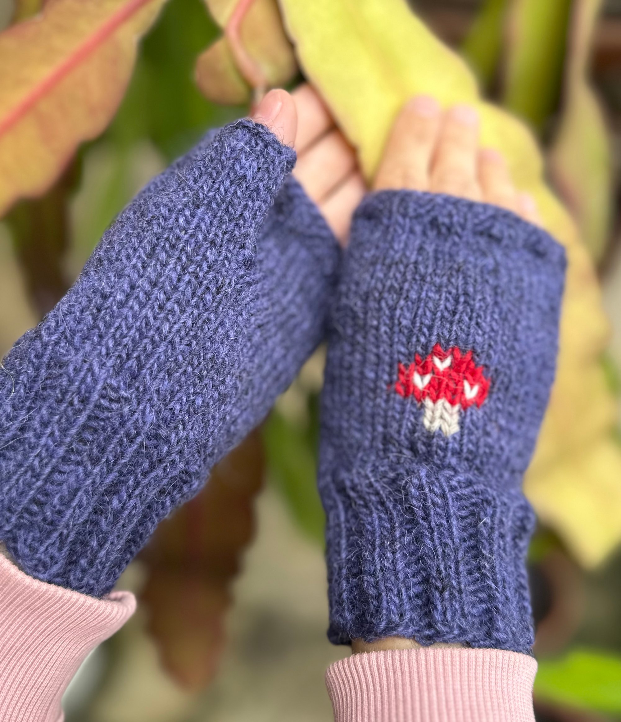 Woodland fingerless mittens with sweet toadstools will keep hands warm and comfortable in any season. Made of authentic Icelandic wool.